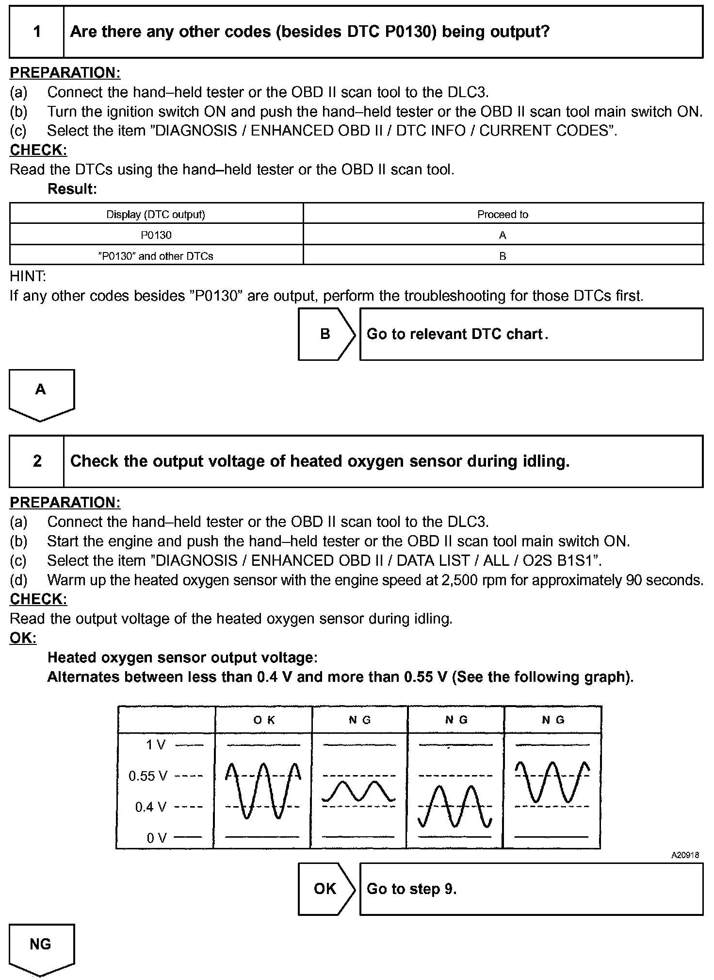 - The output voltage of the heated oxygen sensor and the short term fuel trim value can be read using the hand-held tester or the OBD II scan tool.