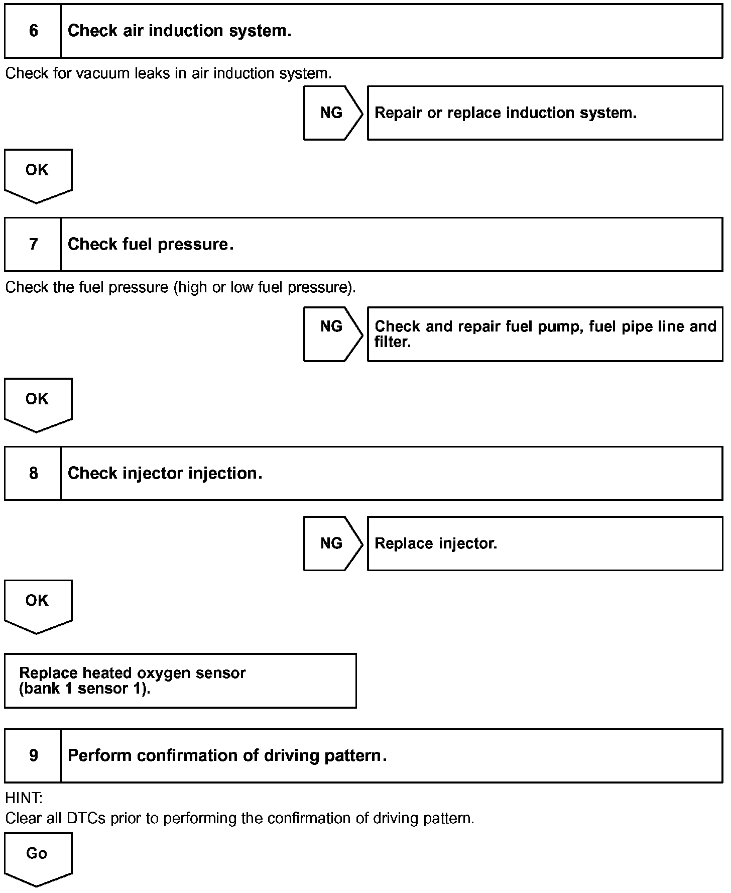 NOTE: If the vehicle is short of fuel, the air fuel ratio becomes LEAN and heated oxygen sensor DTCs will be recorded, and then the MIL comes on.