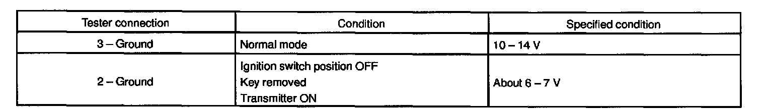 d. In the location where is approx. 1 M away from driver's outside handle in the right direction, and check the transmitter operation when pressing transmission switch on the surface of the transmitter body.