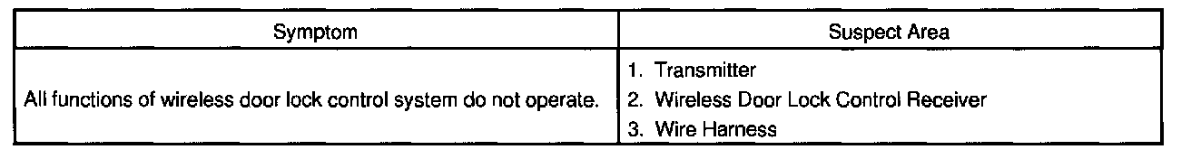 - Troubleshooting of the wireless door lock control system is based on the premise that the door lock control system is operating normally. Accordingly, before troubleshooting the wireless door lock control system, first make certain that the door lock control system is operating normally.