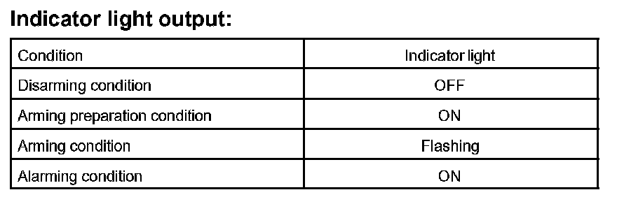 There are 4 conditions in this system which are disarmed state, arming preparation, armed state and alarm sounding.