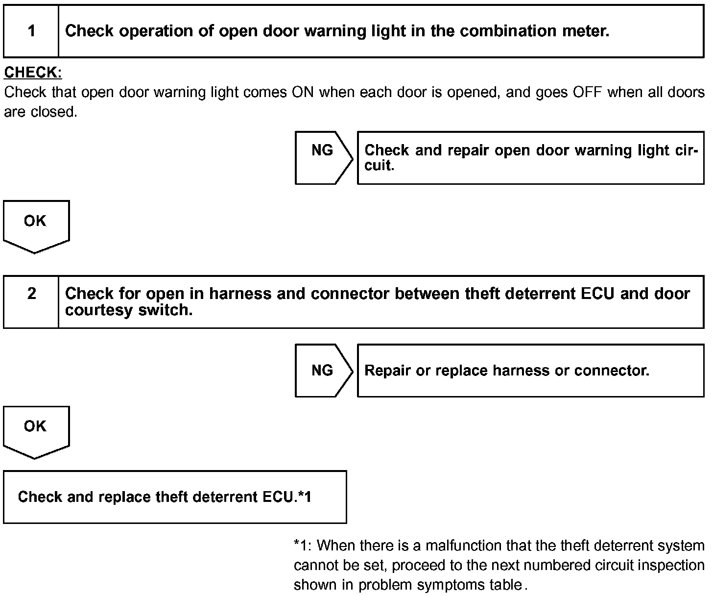The door courtesy switch goes ON when the door is opened and goes OFF when the door is closed.