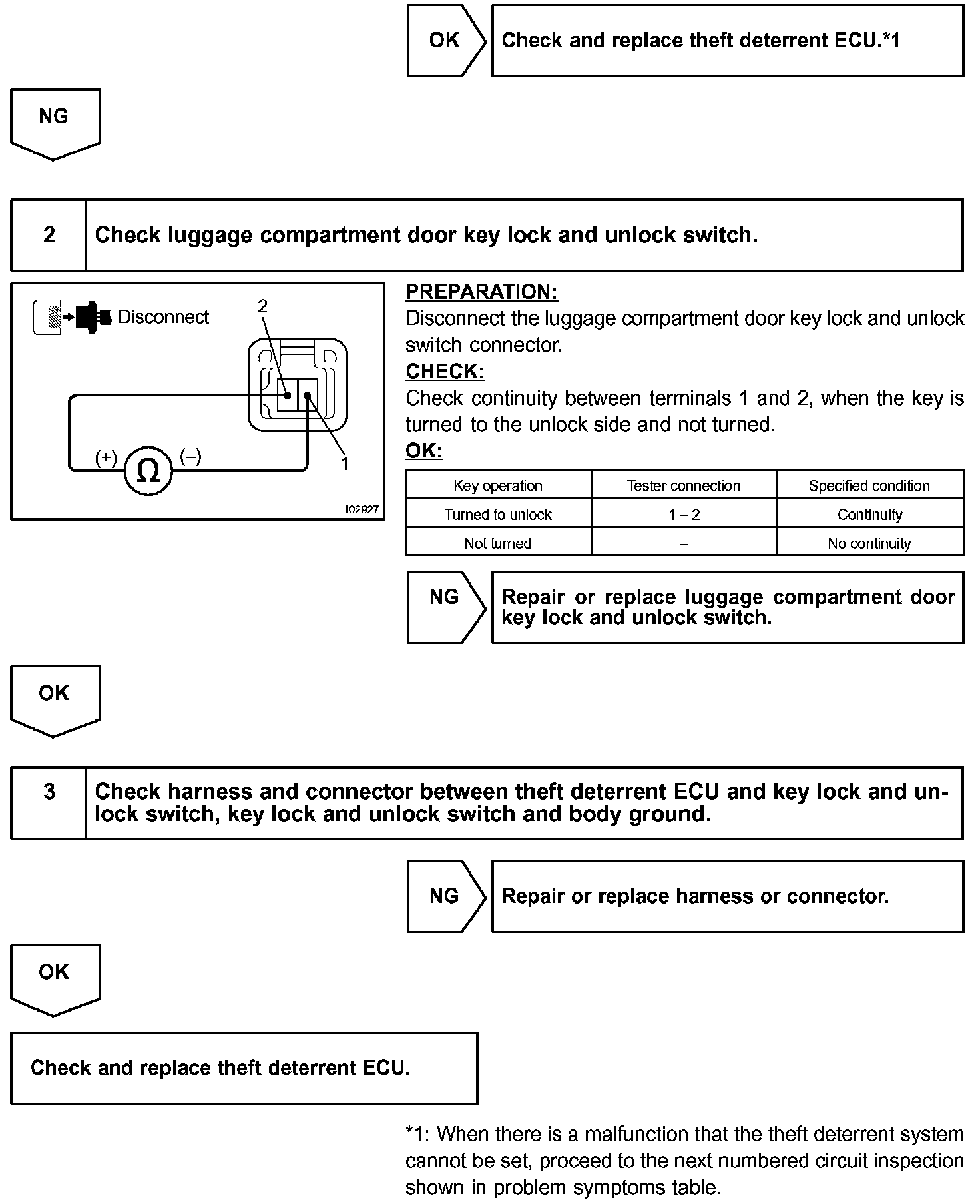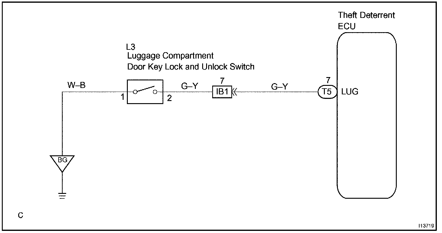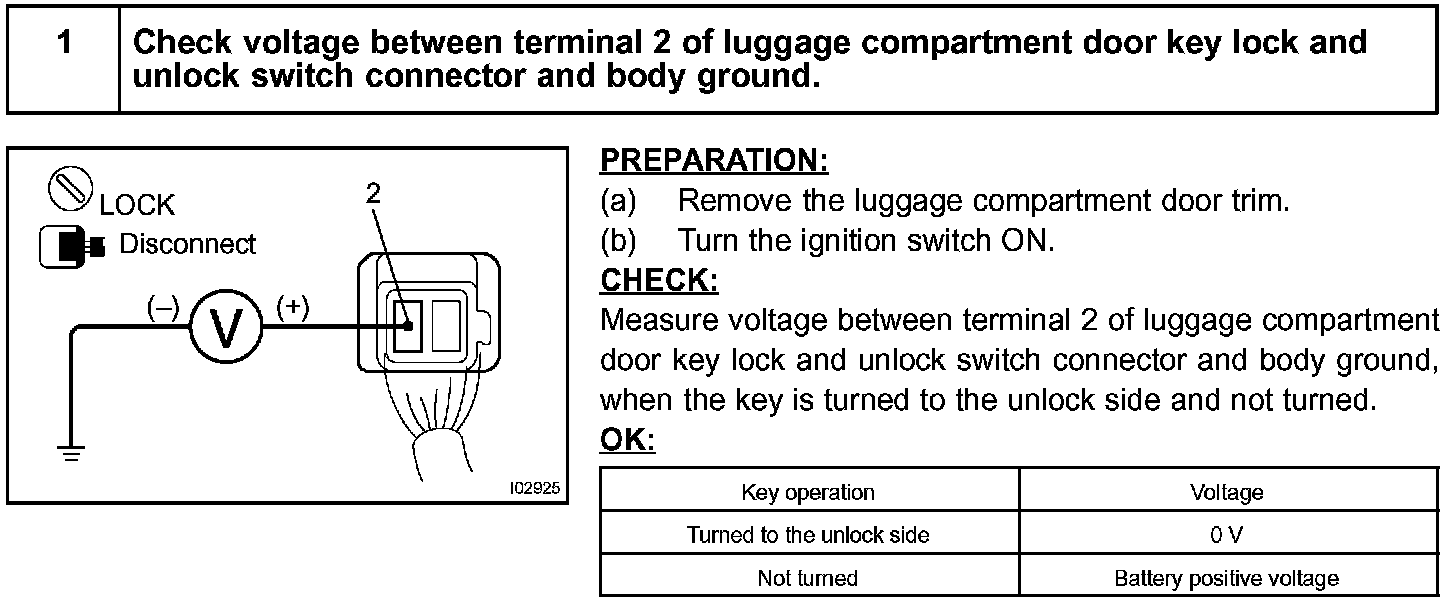 Luggage Compartment Door Key Lock and Unlock Switch CircuitCIRCUIT DESCRIPTION