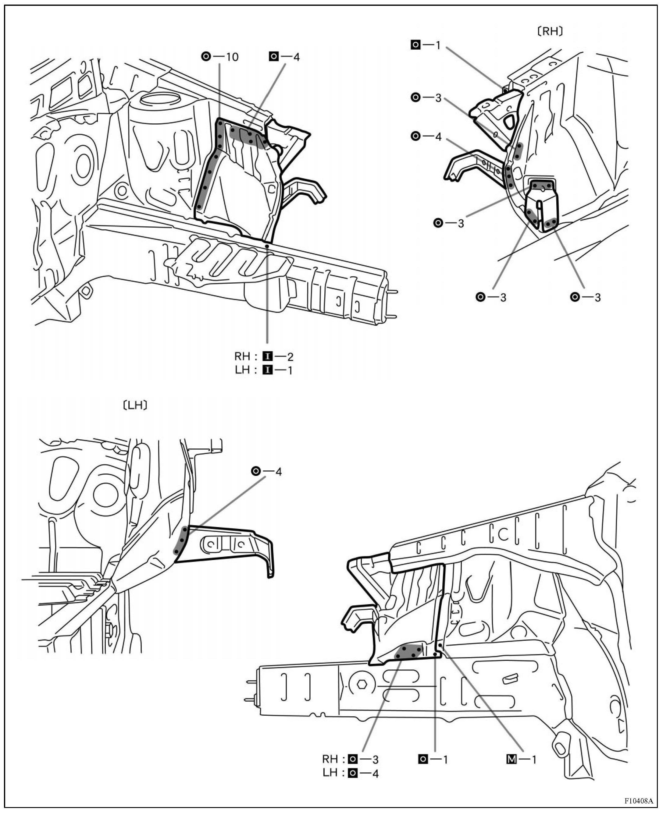 a. Replace the front fender mounting bracket, fender apron plate and engine front support retainer (RH only) at the same time.