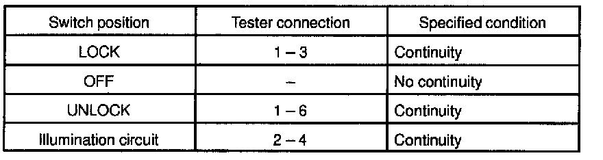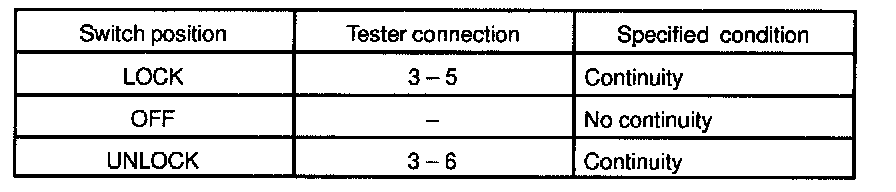 INSPECT DOOR KEY LOCK AND UNLOCK SWITCH CONTINUITY