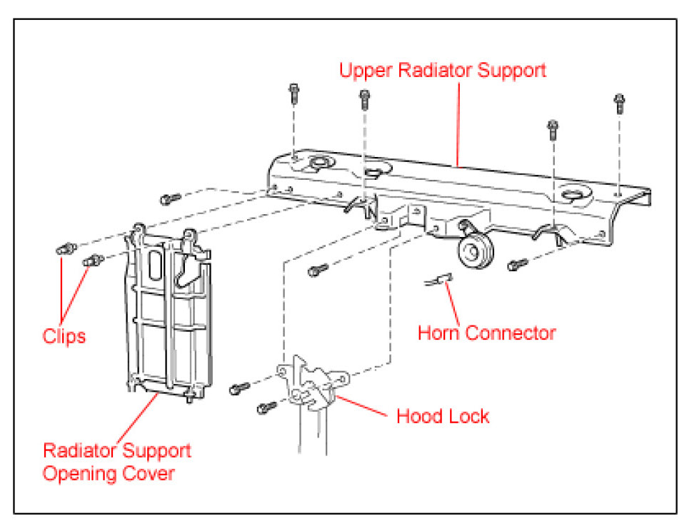 B. Install the radiator upper support with the 7 bolts.
