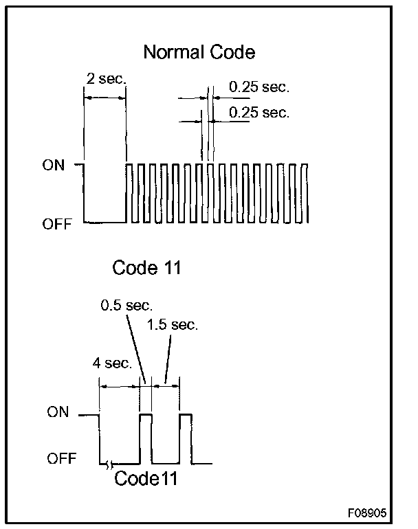 - As an example, the blinking patterns for normal code and codes 11 are shown.