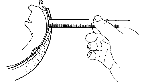 b. Measure the brake drum inside diameter and diameter of the brake shoes. Check that the difference between the diameters is the correct shoe clearance.