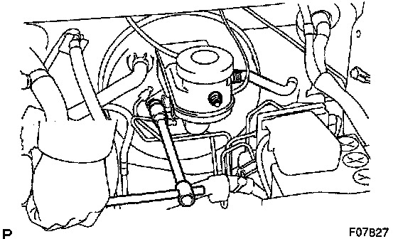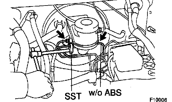 Using SST, disconnect the 2 or 3 brake lines from the master cylinder.