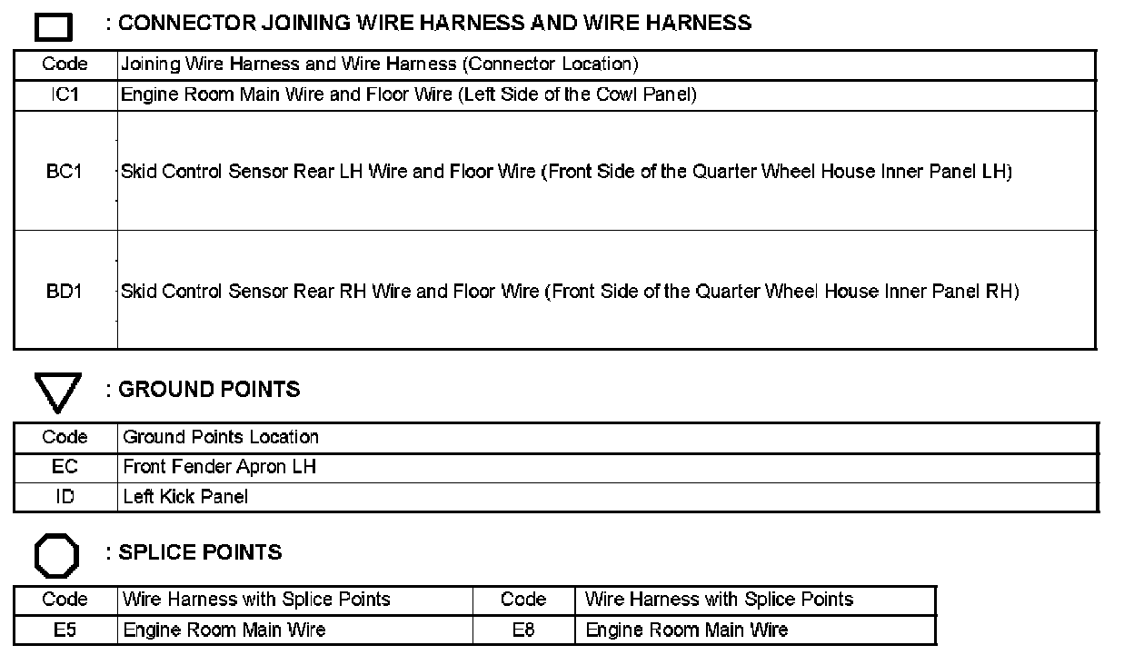 Locations: The locations of components, connectors, ground points, and splices referred to within these diagrams can be found at Vehicle Locations. Locations