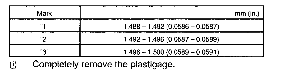 i) Measure the Plastigage at its widest point.