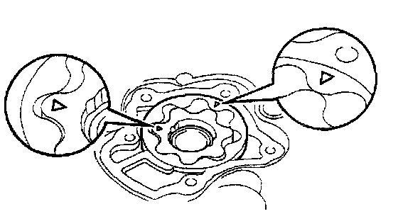 a) Place the drive and driven rotors into timing chain cover with the marks facing the oil pump cover side.