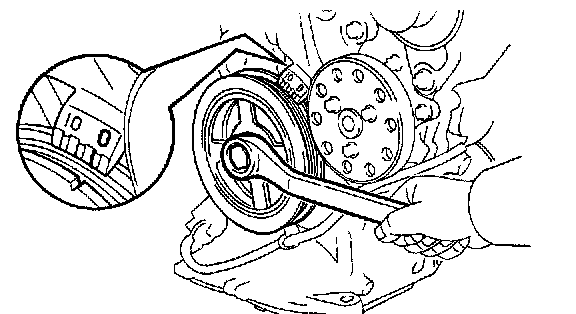 a) Turn the crankshaft pulley, and align its groove with timing mark "0" of the timing chain cover.