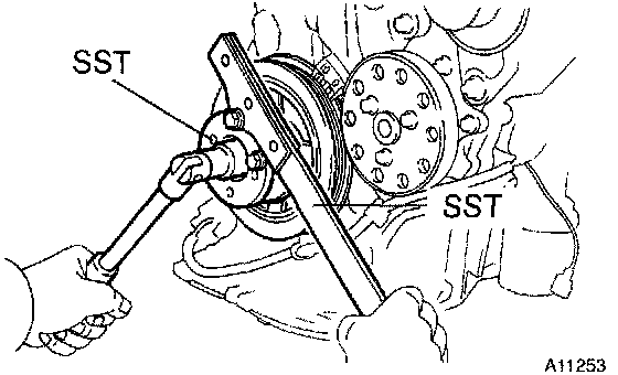 HINT: If necessary, remove the pulley with SST.