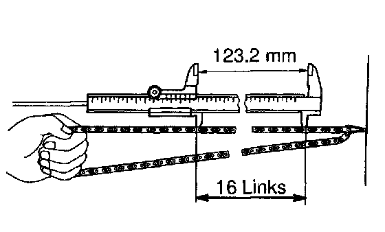 If the elongation is greater than maximum, replace the chain.