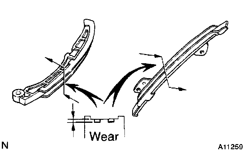 2. INSPECT CHAIN TENSIONER SLIPPER AND VIBRATION DAMPER