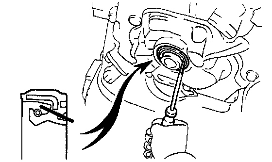 b) Using a screwdriver, pry out the oil seal.