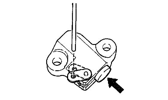 b) While rotating the lock plate of the tensioner down-ward, insert a bar of 2.5 mm (0.098 inch) into the holes in the lock plate.