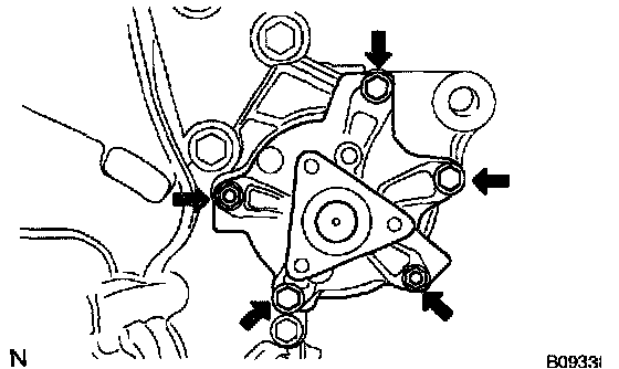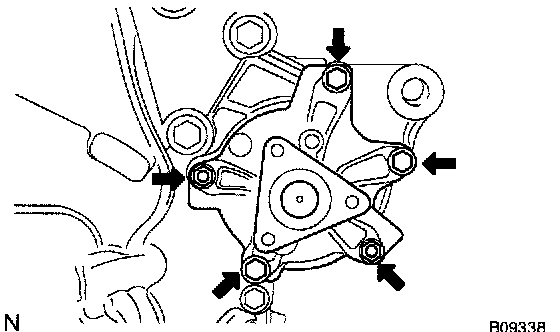 b) Turn the pulley, and check that the water pump bearing moves smoothly and quietly.