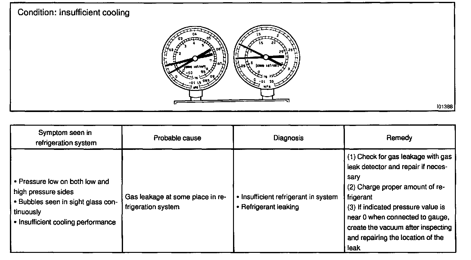 This is a method in witch the trouble is located by using a manifold gauge set. Read the manifold gauge pressure when the these conditions are established.