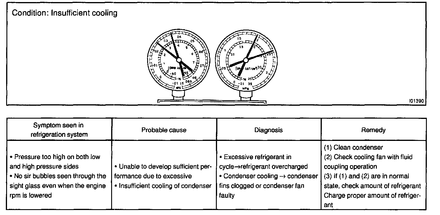6. Refrigerant overcharged or insufficient cooling of condenser