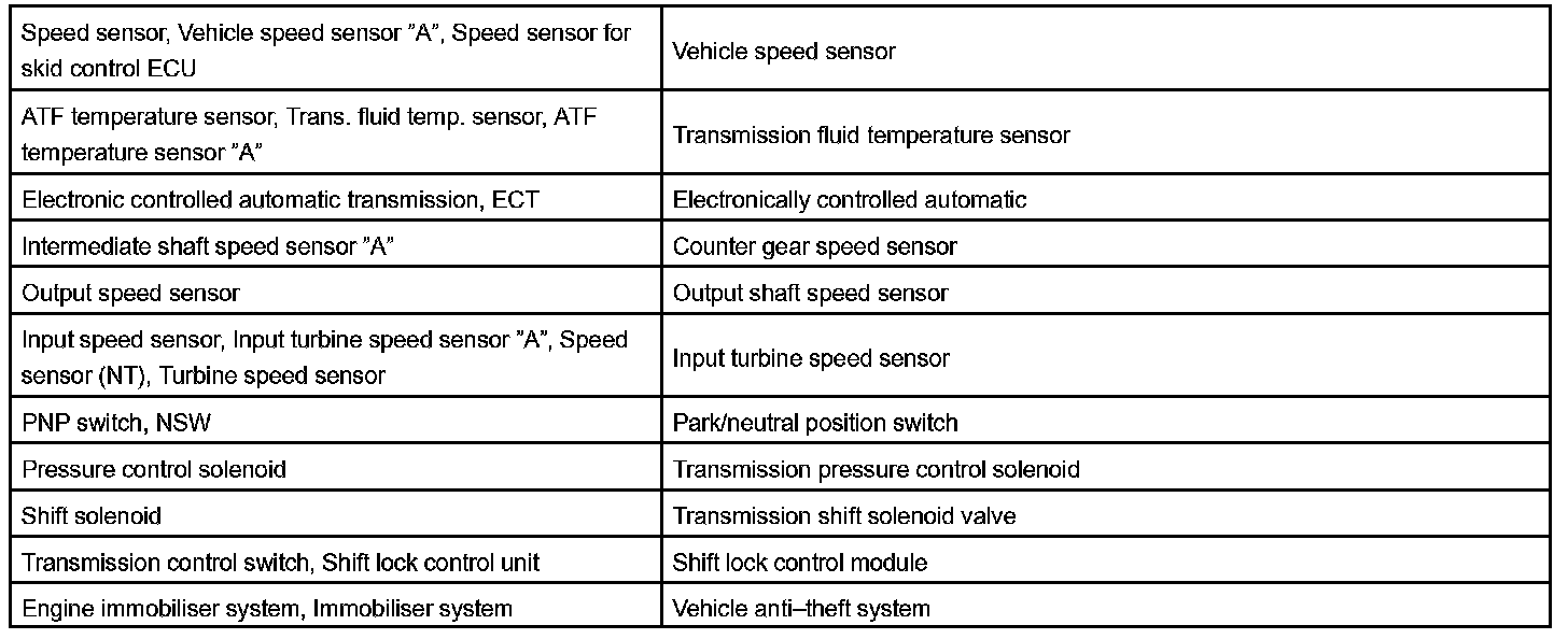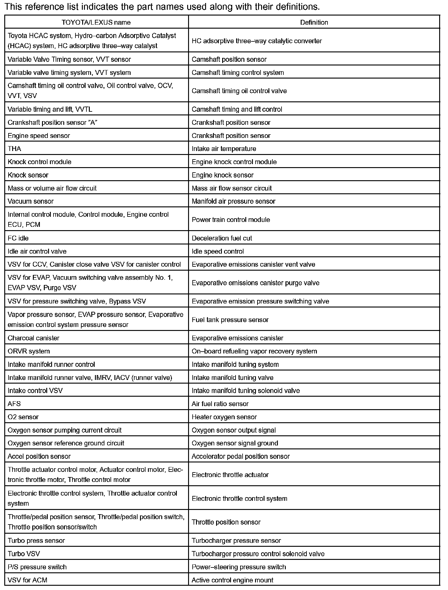 Toyota Part and System Name List Part 1: