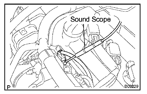 b. With the engine running or cranking, use a sound scope to check that the operating noise is normal in proportion to engine speed.