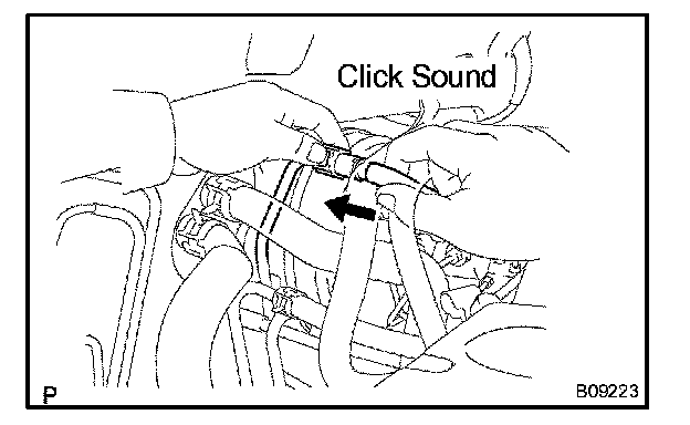 4. Align the connector axis with the pipe axis, and push in the connector until the retainer makes a "click" sound. If the connection is tight, apply a small amount of new engine oil on the tip of the pipe.