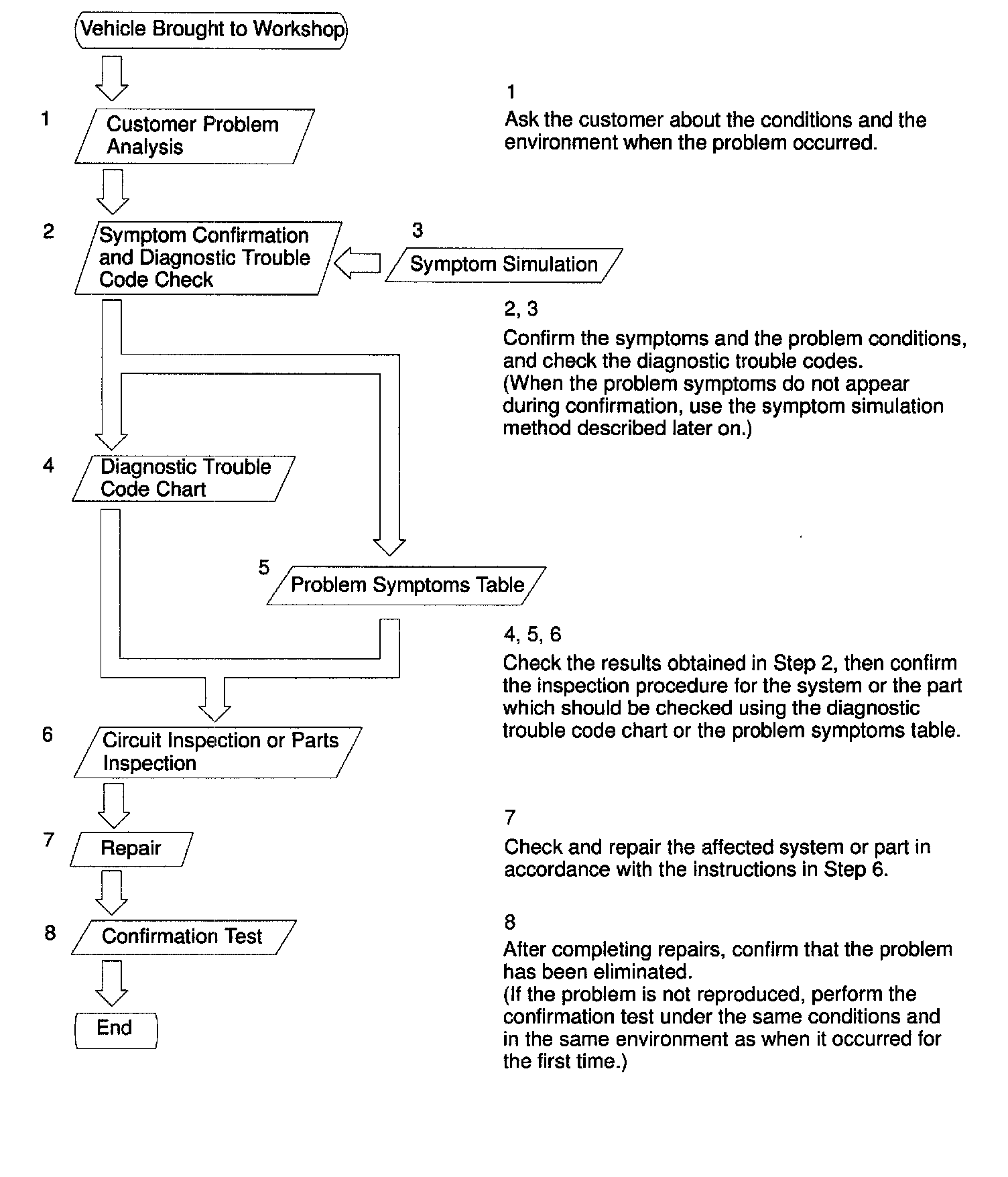 HOW TO PROCEED WITH TROUBLESHOOTINGCarry out troubleshooting in accordance with the procedure given. Here, only the basic procedure is shown. Details are provided in Diagnostics section, showing the most effective methods for each circuit. Confirm the troubleshooting procedures first for the relevant circuit before beginning troubleshooting of that circuit.