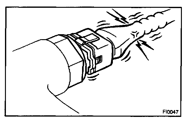 When inserting tester probes into a connector, insert them from the rear of the connector. When necessary, use mini test leads. For water resistant connectors which cannot be accessed from behind, take good care not to deform the connector terminals.