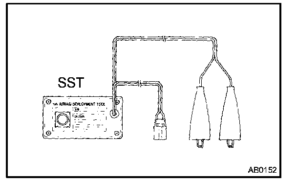 - When deploying the airbag, always use the specified SST (SRS Airbag Deployment Tool). Perform the operation in a place away from electrical noise.