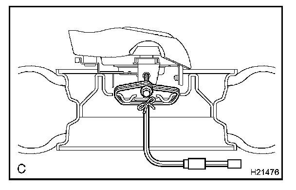 (c) Using a service-purpose wire harness, tie down the steering wheel pad to the disc wheel.