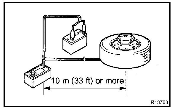 (1) Check that no one is inside the vehicle or within a 10 m (33 ft) radius of the vehicle.