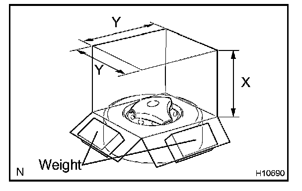 - When the dimension Y of the cardboard box exceeds the diameter of the disc wheel with tire to which the steering wheel pad is tied, X should be the following size.