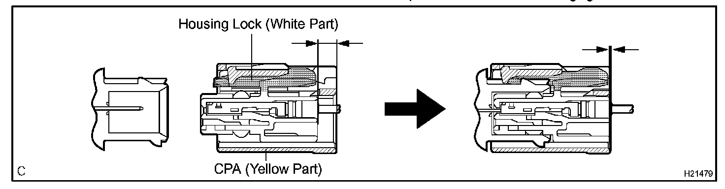 Only when the housing lock (white part) is completely engaged, the CPA (yellow part) slides, which completes the connector engagement.