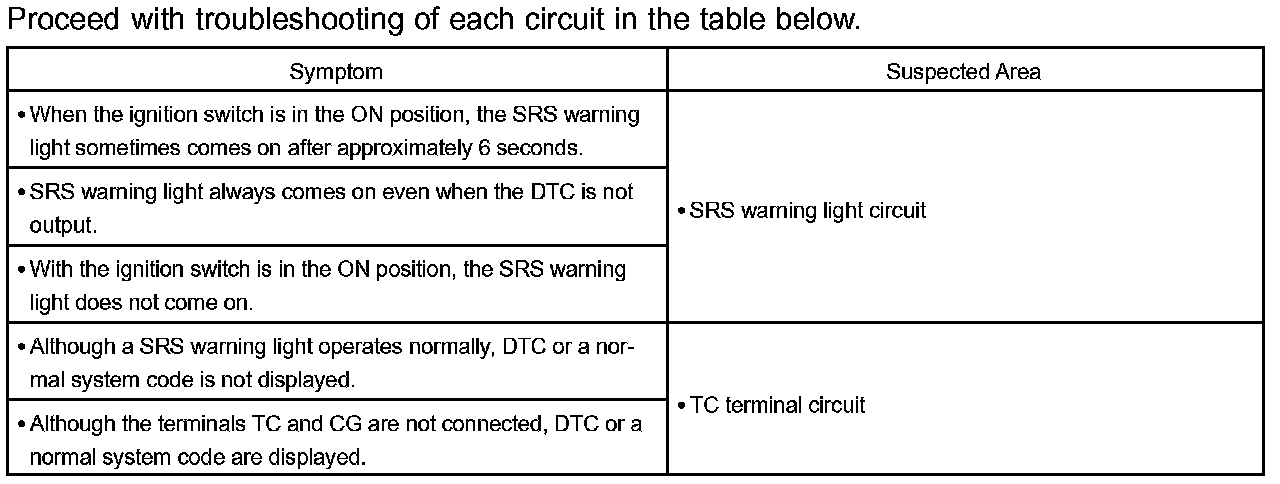 Problem Symptoms Table: