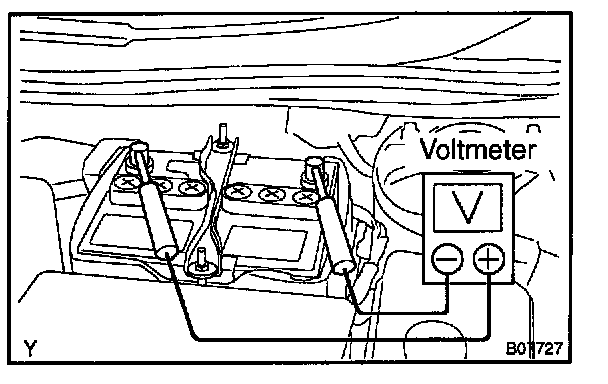 a. If a tester is not available, connect a voltmeter to the charging circuit as follows: