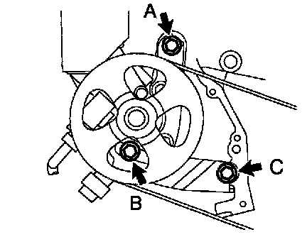 b. Loosen the bolt A sufficiently so that PS vane pump assembly can be removed.