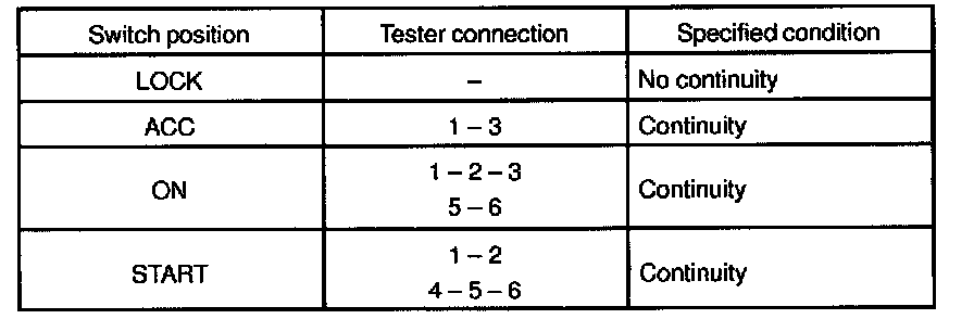 1. INSPECT IGNITION SWITCH CONTINUITY