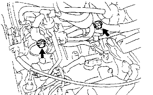 Loosen the 2 clips and disconnect the 2 oil cooler hoses.