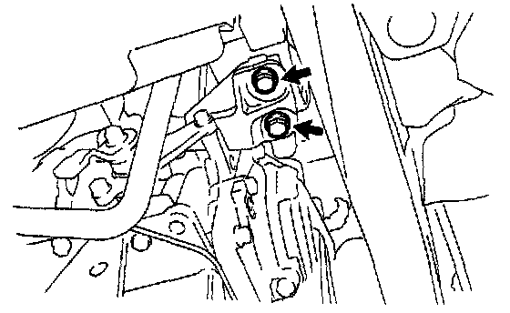 Remove the 4 bolts and LH and RH front suspension member reinforcement.