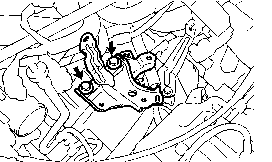 Remove the 2 bolts and bracket and shift control cable clamp.