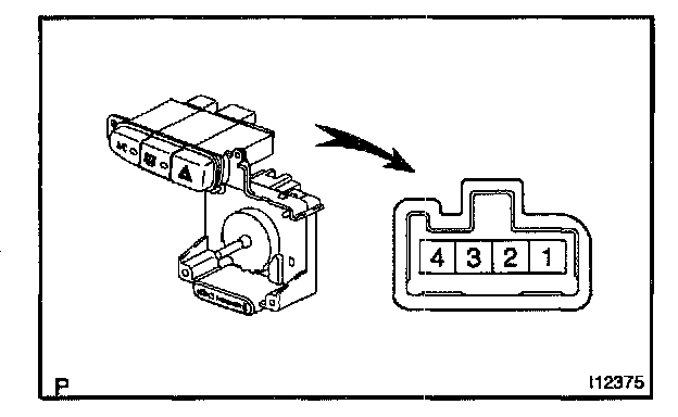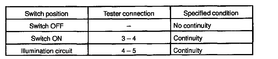 Disconnect the connector from the switch and inspect the connector on wire harness side, as shown in the chart.