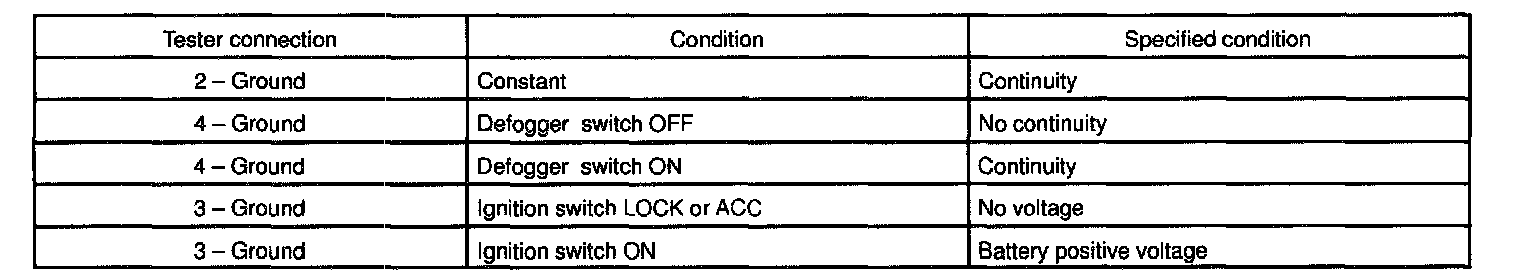 INSPECT DEFOGGER SWITCH CONTINUITY