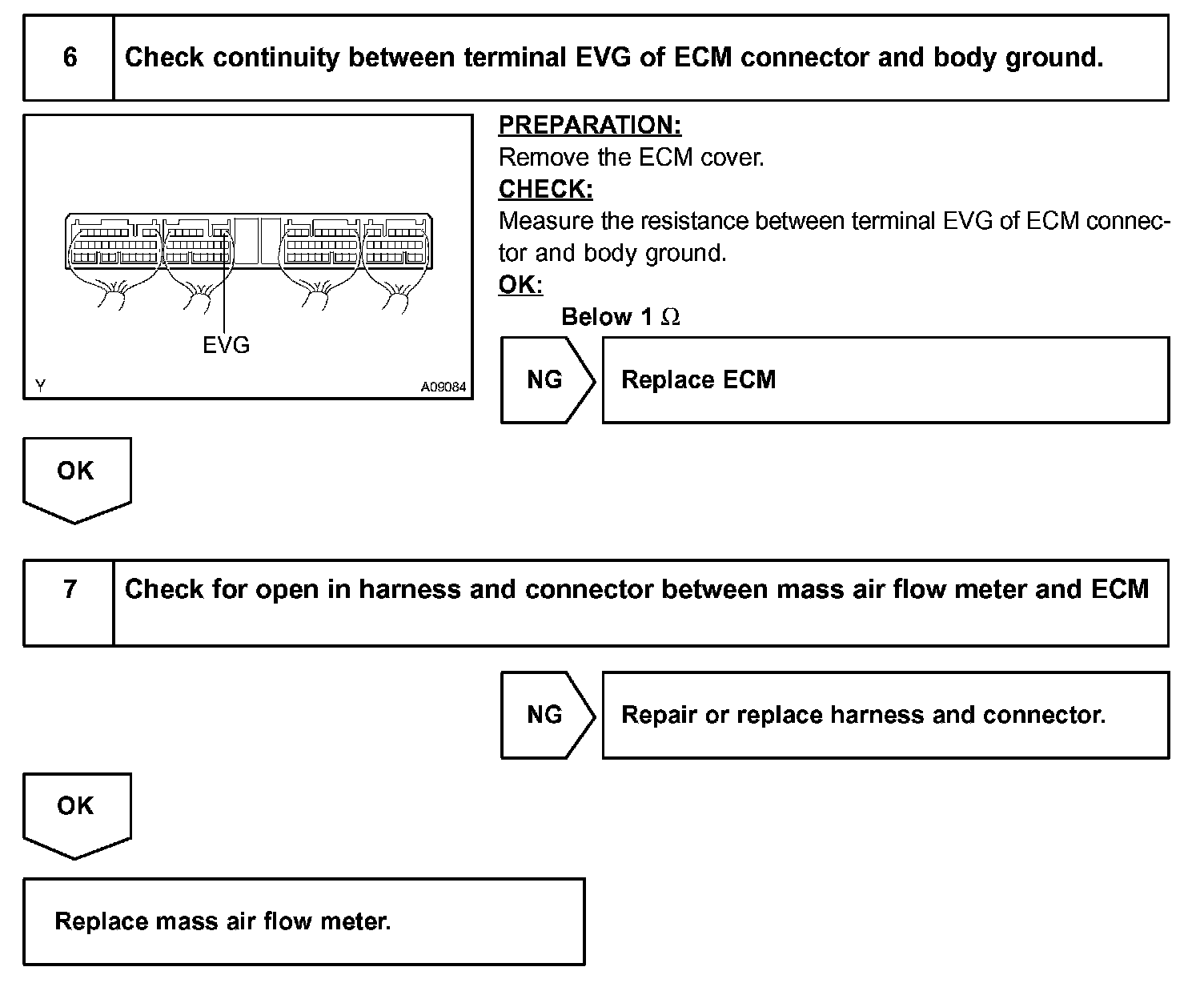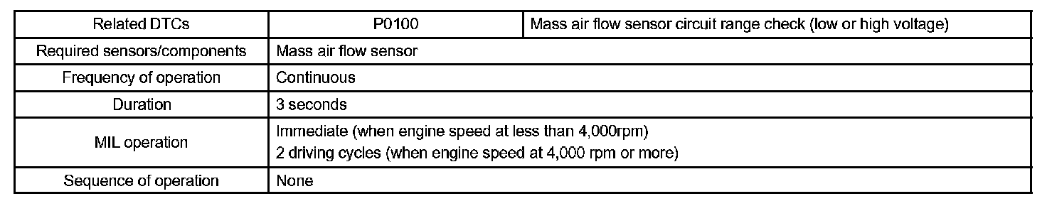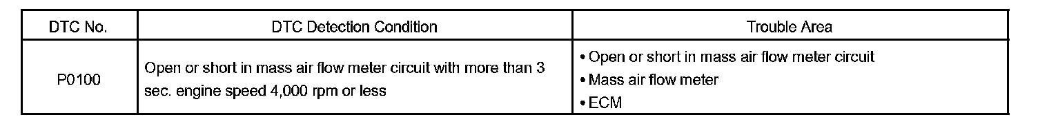 If there is a defect or an open or short circuit in the MAF meter, the voltage level will deviate outside the normal operating range. The ECM interprets this deviation as a defect in the MAF meter and sets a DTC.