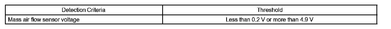The MAF meter voltage output is less than 0.2 V or more than 4.9 V, and either the condition continues for more than 3 seconds.