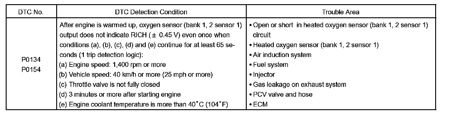 DTC P0154 OXYGEN SENSOR CIRCUIT NO ACTIVITY DETECTED (BANK 2 SENSOR 1)CIRCUIT DESCRIPTION