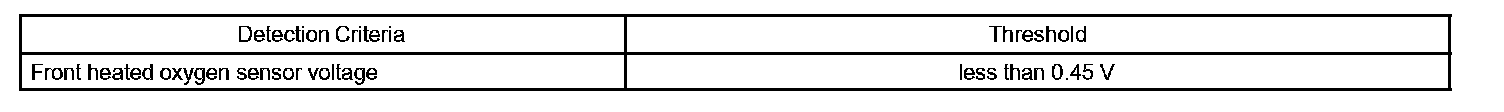 If the oxygen concentration in the exhaust gas increases and the heated oxygen sensor voltage is below 0.45 V, the air-fuel ratio is "LEAN". The heated oxygen sensor informs the ECM about the LEAN condition. If the oxygen concentration in the exhaust gas increases and the heated oxygen sensor voltage is about 0.45 V, the air-fuel ratio is "RICH". The heated oxygen sensor informs the ECM about the RICH condition.