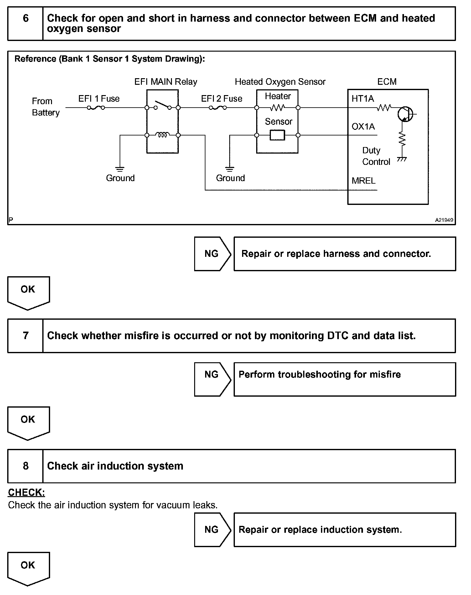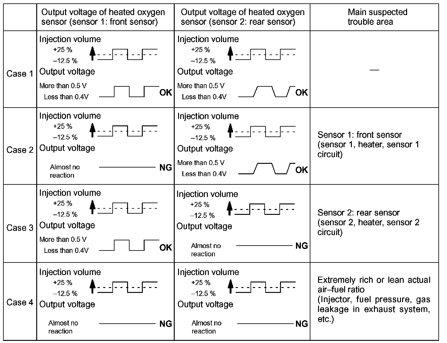 Narrowing down the trouble area is possible by performing "A/F CONTROL" ACTIVE TEST (heated oxygen sensor or other trouble areas can be distinguished).