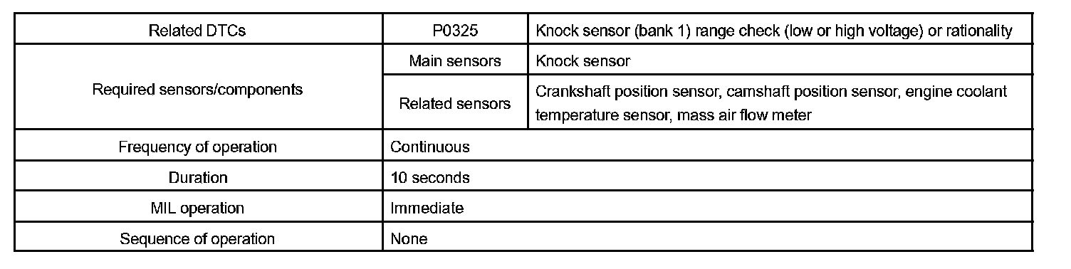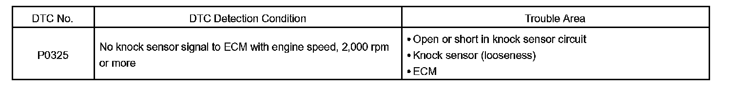 DTC P0325 KNOCK SENSOR 1 CIRCUIT (BANK 1 OR SINGLE SENSOR)CIRCUIT DESCRIPTION